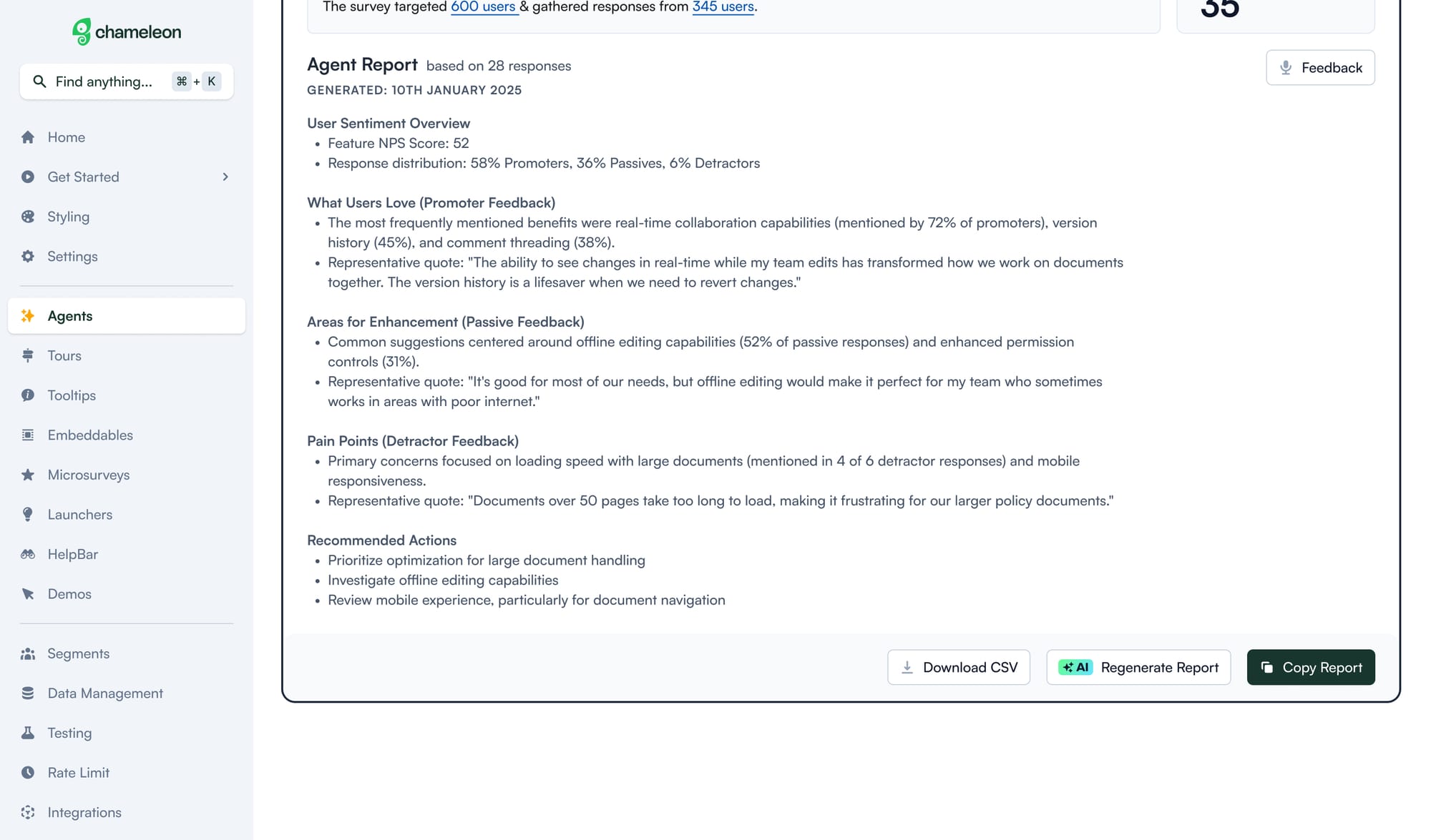 More screens from the feature feedback agent